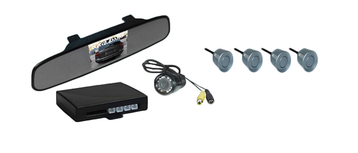 Безжична парктроник система с 3.5" цветен, LCD TFT дисплей, който е вграден в изключително тънко огледало за задно виждане и предава изображение от камера за задно виждане, която е снабдена с диоди за нощно виждане, когато връщате назад дори и през нощта ще имате перфектно осветена картина на дисплея, комплекта се допълва и от 4 ултразвукови датчика, които допълнително осигуряват безопасен периметър при паркиране на заден ход.