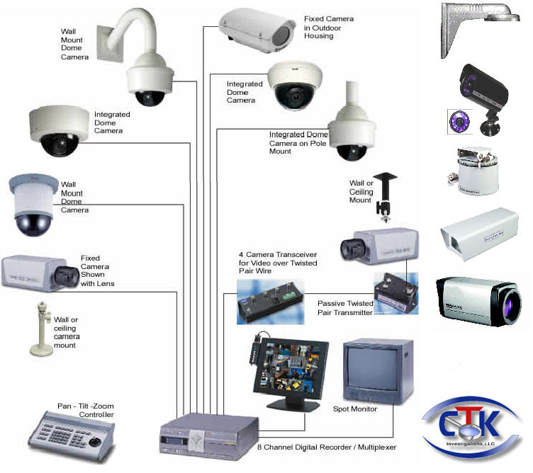 Както вече се изясни в този раздел се разглеждат средствата за видео и аудио наблюдение и запис непосредствено или от голямо разстояние. Многообразието на предлаганата на пазара техника е изключително голямо. Има камери за вътрешен монтаж и камери за външен монтаж, има цветни и черно-бели камери, камери с ниска и висока резолюция, камери с и без корпус (платкови камери) , камери с и без вграден микрофон, има камери с чувствителност в инфрачервения спектър и добавени инфрачервени прожектори за нощно виждане, има web камери които могат директно да се свържат с интернет дори без наличието на компютър, има безжични камери за инсталиране на места до които е трудно да се прекара кабел. Всичко това дава само обща представа за огромното многообразие на предлаганите технически средства и при това засяга само един от необходимите компоненти за видеонаблюдението - камерата. Ако се направи подробно описание на многообразието от възможности и за всеки един от останалите компоненти (в това число: монитори, устройства и софтуер за запис, квадратори, трансмитери , усилватели, компютри и т.н. ) би се получил огромен списък чието място не е тук. Хората които се интересуват от всички подробности биха могли да ги открият в специализираната техническа литература. Ние предлагаме не отделни компоненти , а цялостни индивидуални решения за всяка конкретна ситуация и всеки конкретен проблем възникнал пред клиентите ни. Ето защо тук няма списък със стоки и техните цени. Все пак може да се спомене че едно непретенциозно решение струва около 200-250 лв. ,което ще отговори на Вашите нужди и желания, като разбира се пак казваме ,че всичко е индивудуално и цената може както да бъде дори по-ниска от посочената, така може да достигне и доста по-висока сума. Не се колебайте да се свържете с нас и да ни запитате за конкретното си желание за решение за видеонаблюдение и ние ще изготвим индивидуална оферта за Вас ! Очакваме Ви.